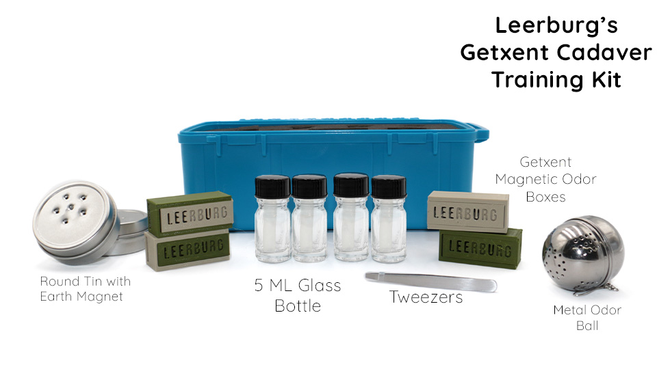 This Getxent training kit is designed to be used during the foundation training of cadaver dogs. The items in the kit are designed to be used in land and water recovery training.