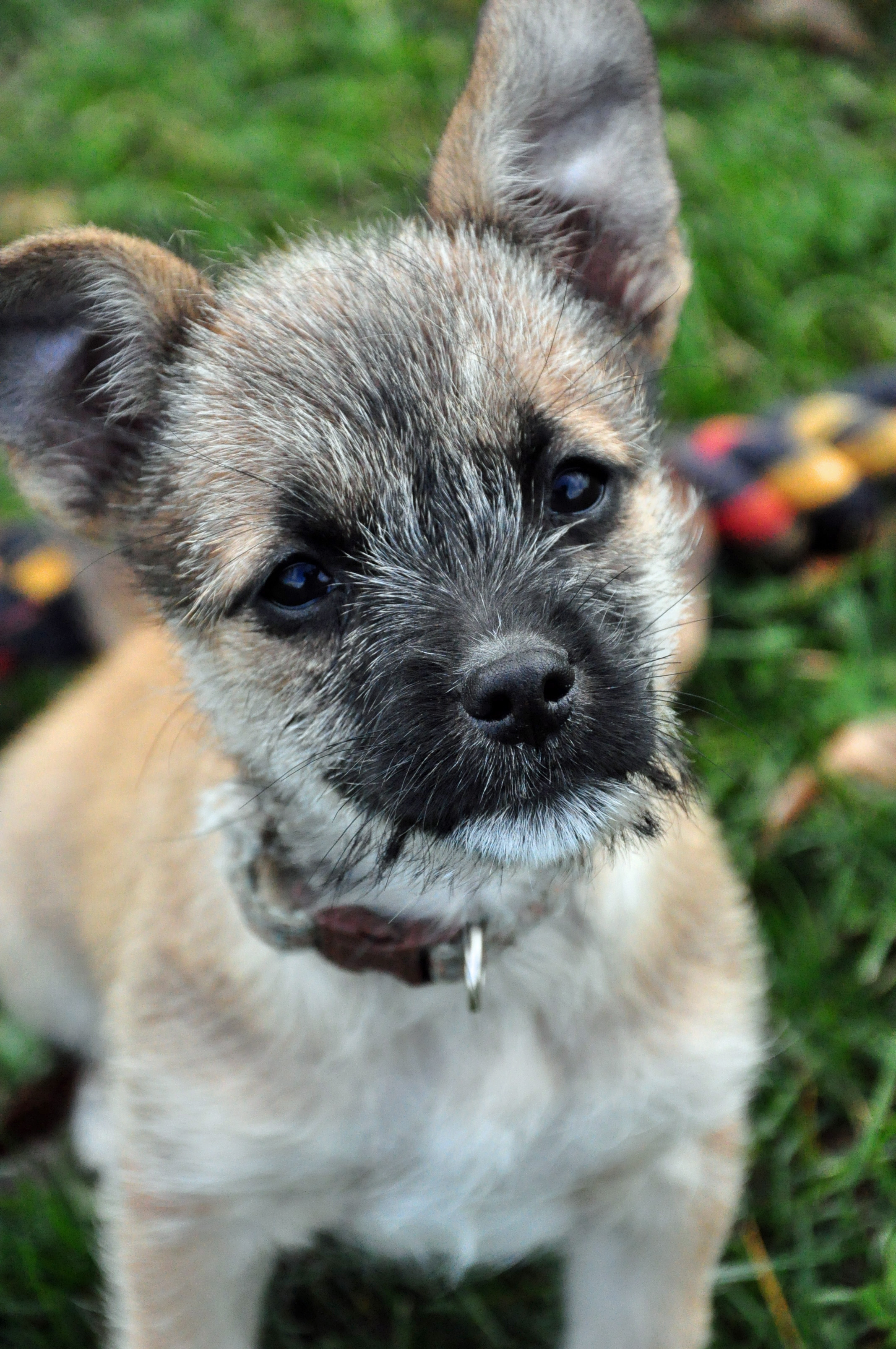 This a picture of Bailey my long coat Chihuahua out having some fun.