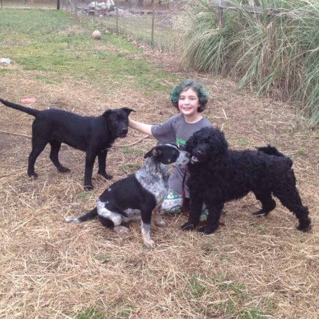 ACD/Pit mix siblings Luna & Franco,PWD Captain & 7yr old KP having fun on a warm winter day