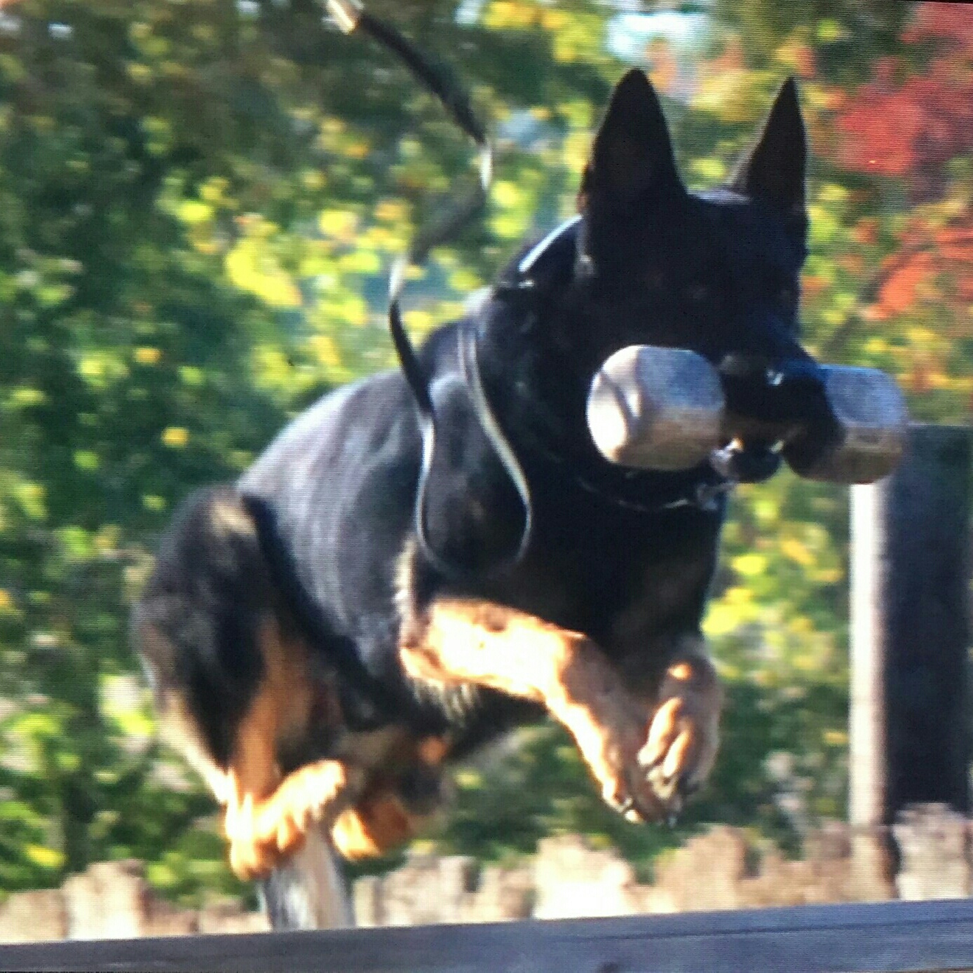 Long Haired German Shepherd retrieving the phone.