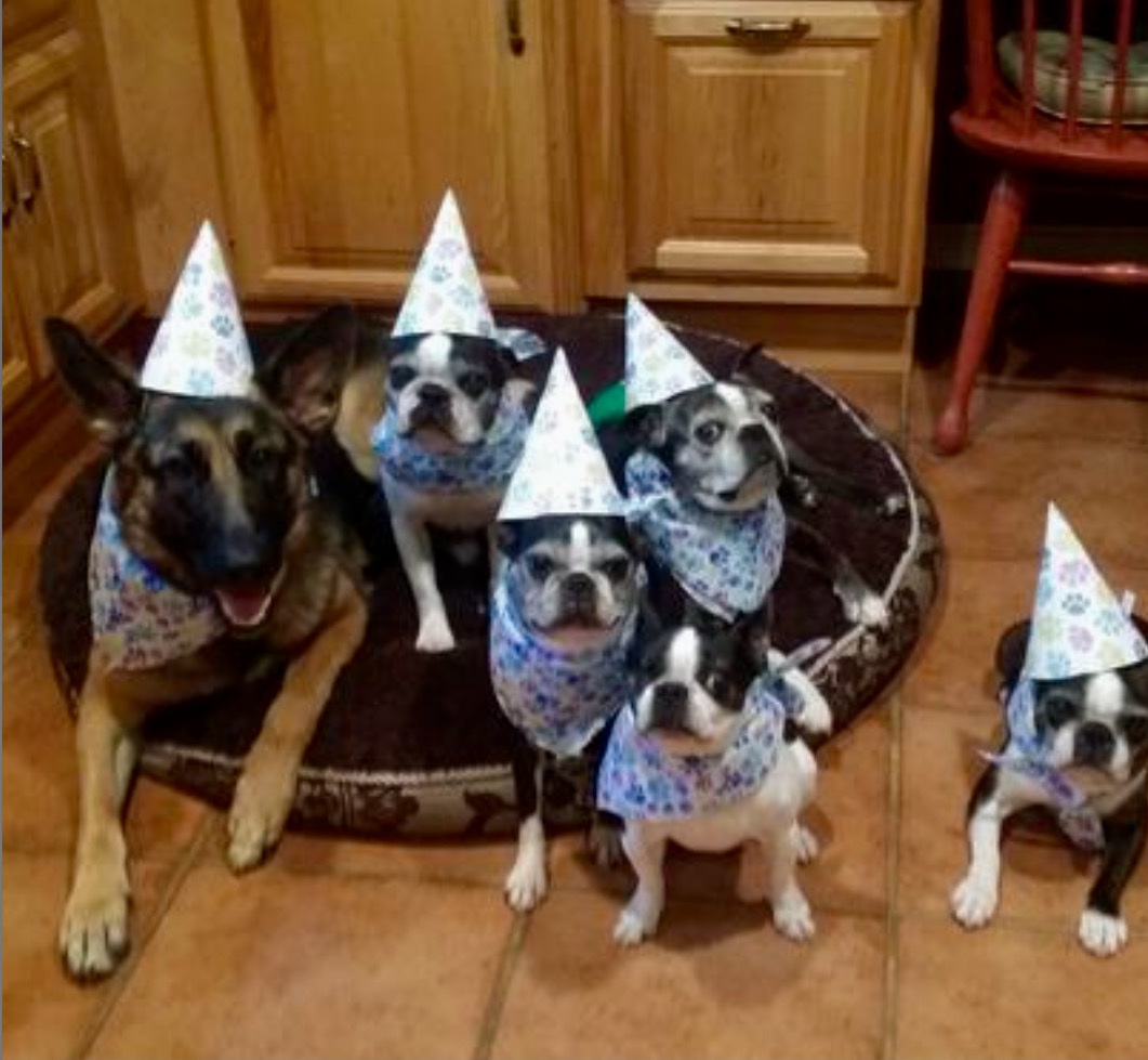 Georgia,the German Shepherd turns 1 years old and her Boston Terrier siblings joined the party.