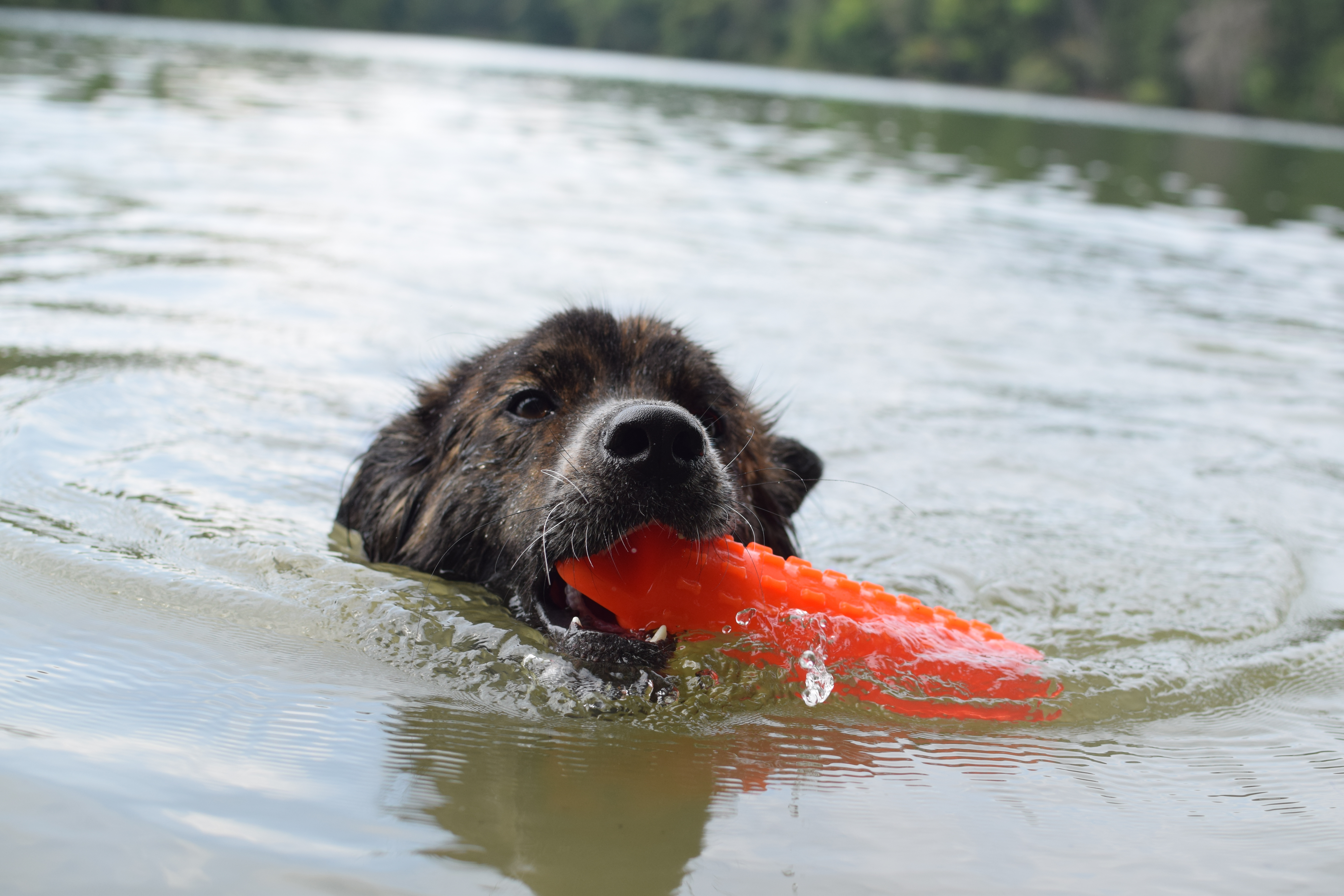 Sprockett enjoying the hot weather by jumping in and out of cattle water trough