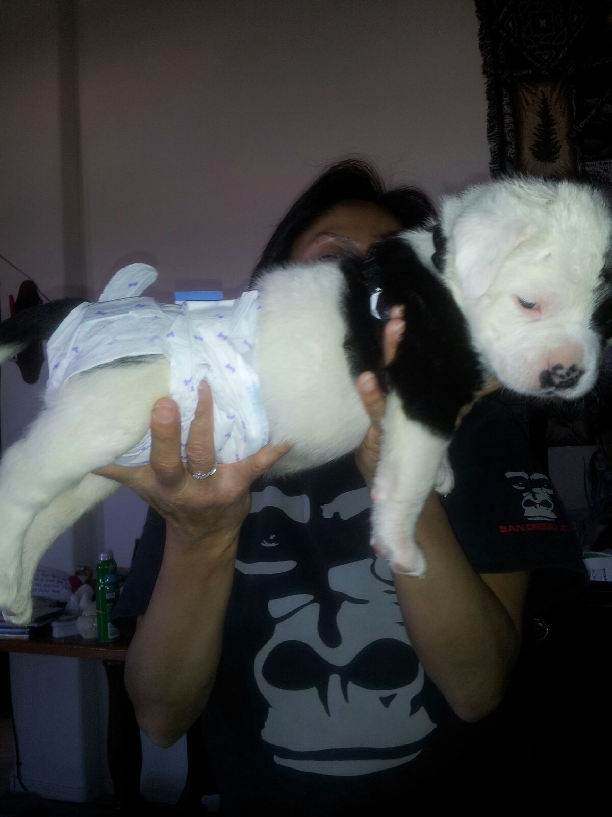 Sapphire, Petit Brabancon (6 Months) , Comforts Dani, griffon bruxellois (9 Years), in her elderly years.