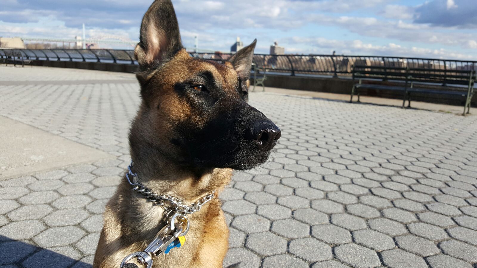 Picture was taken spring of 2004 about 5 km north of the Sheik Isa Air Base in Bahrain. We had just finished an exercise with the Bahrain Defense Force (BDF for short), a fellow handler yelled over to myself and Bonnie and took this shot.