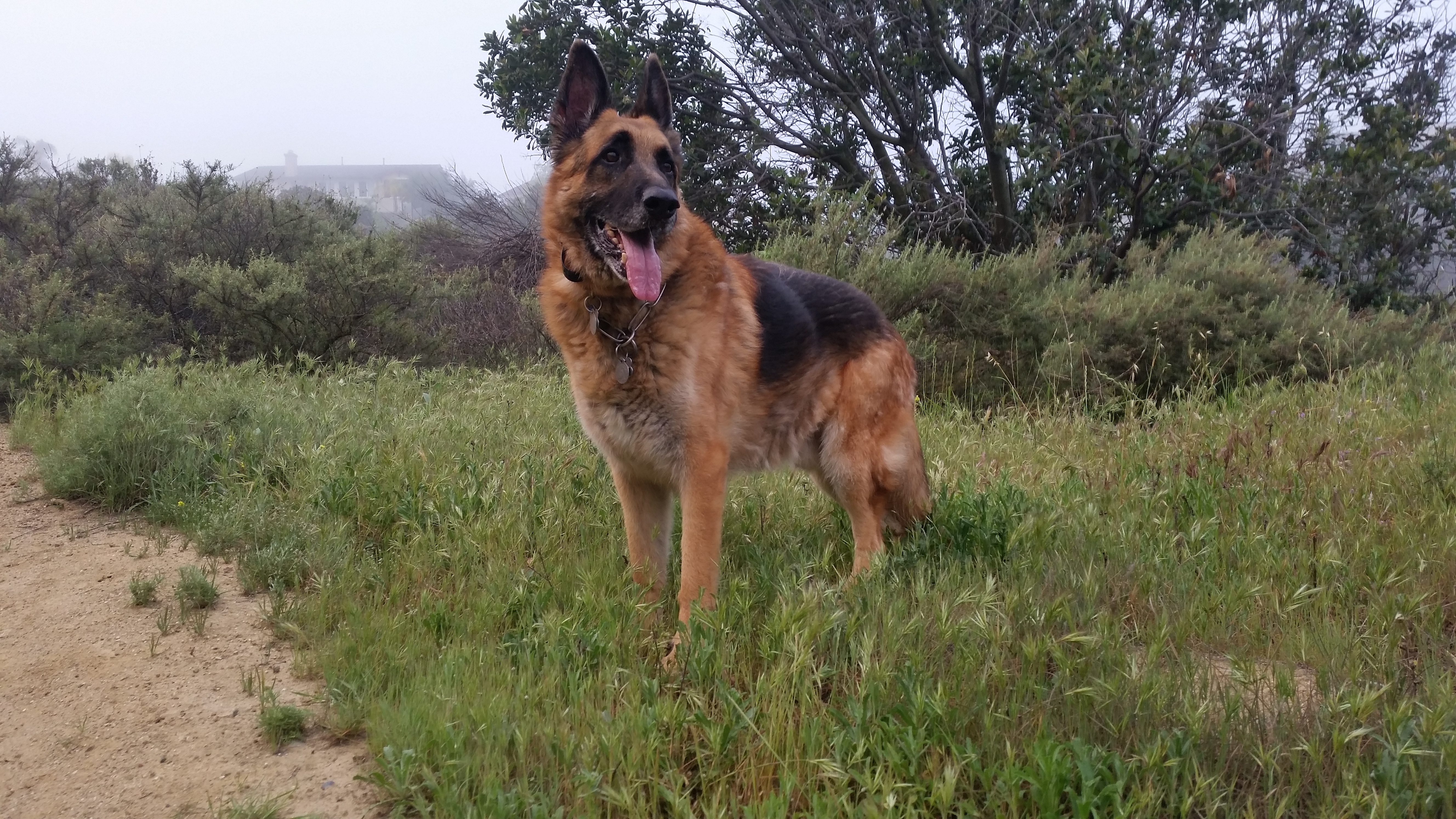 My GSD Sylvester in a majestic pose on a hike to Sierra Peak, a local mountain peak in Riverside County, CA. Sylvester is 10 years old in this picture. Now he is almost 11 and still hiking strong :)
