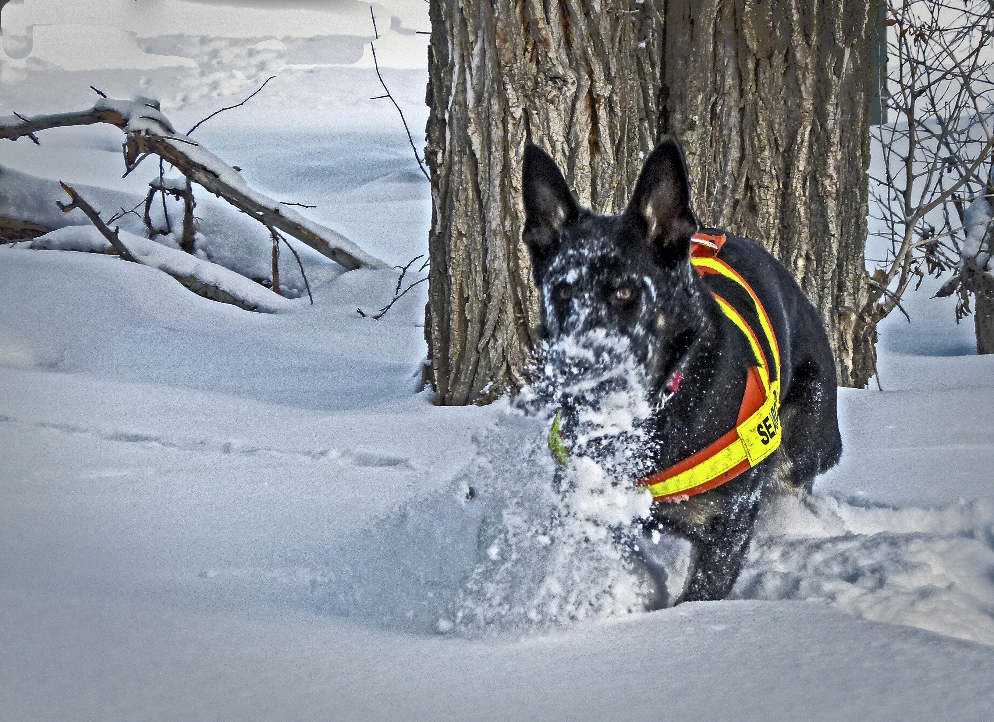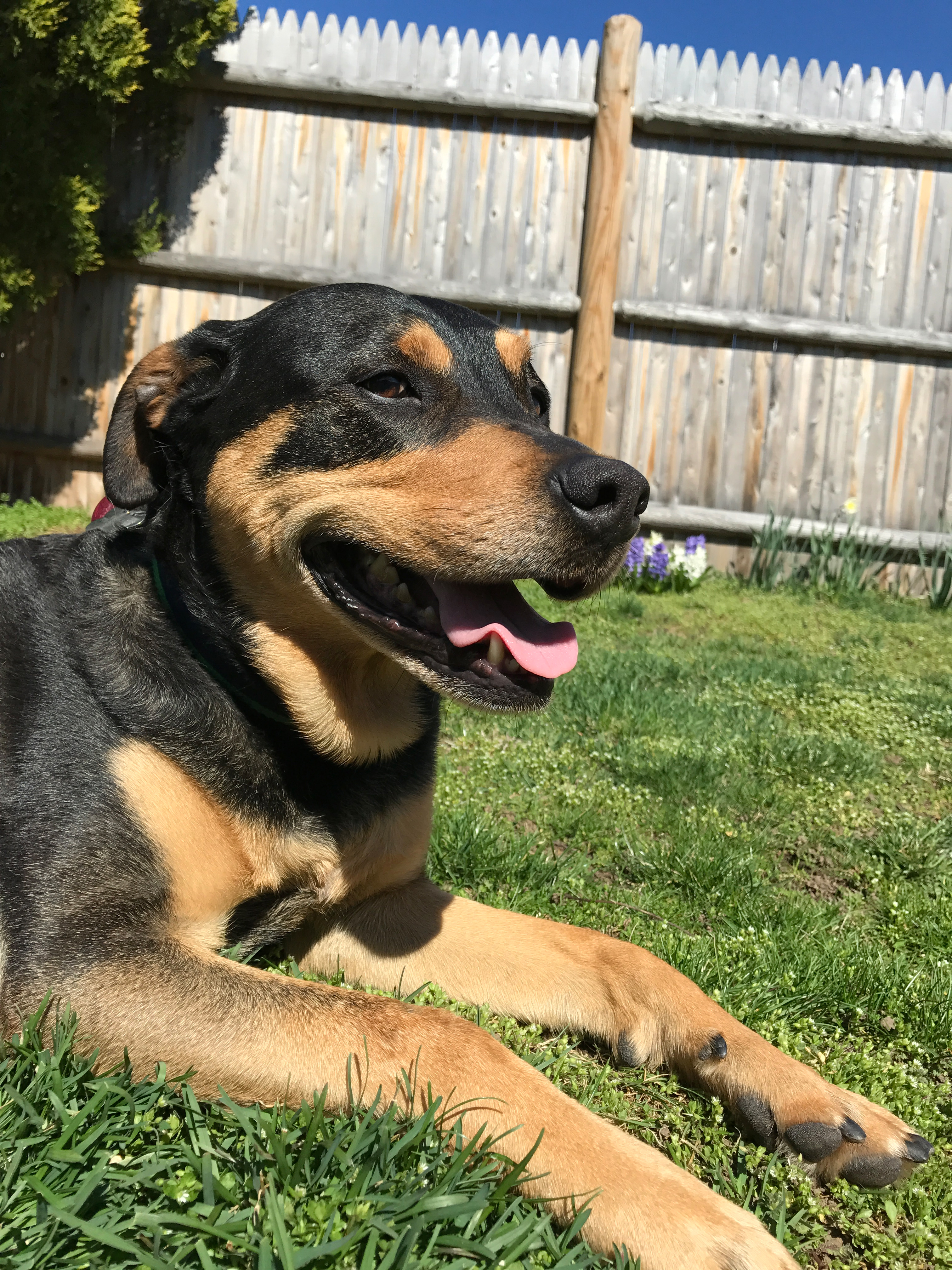 My 13 year old dog doing what she loves best - being a dog! And diving for rocks in the river.