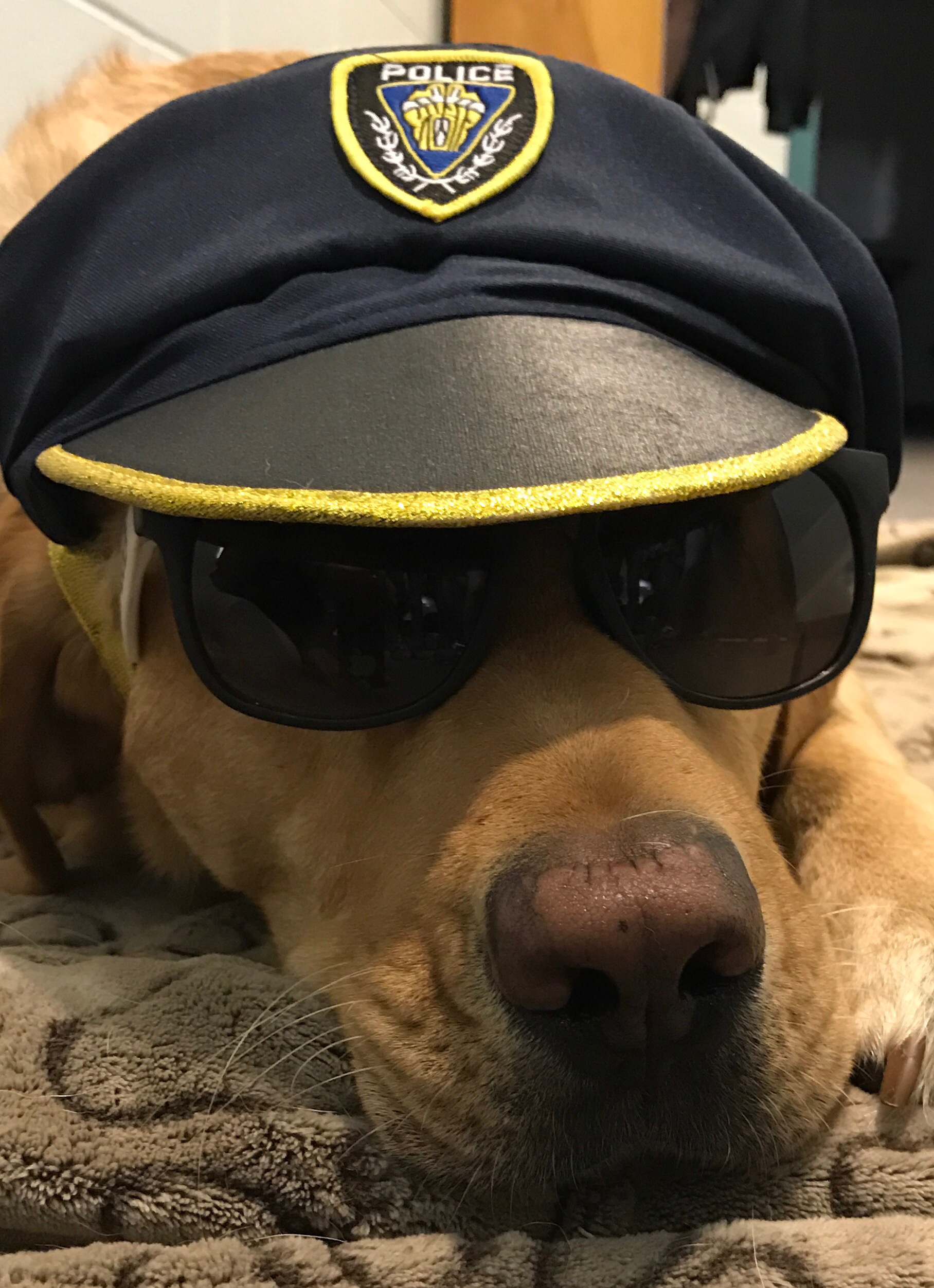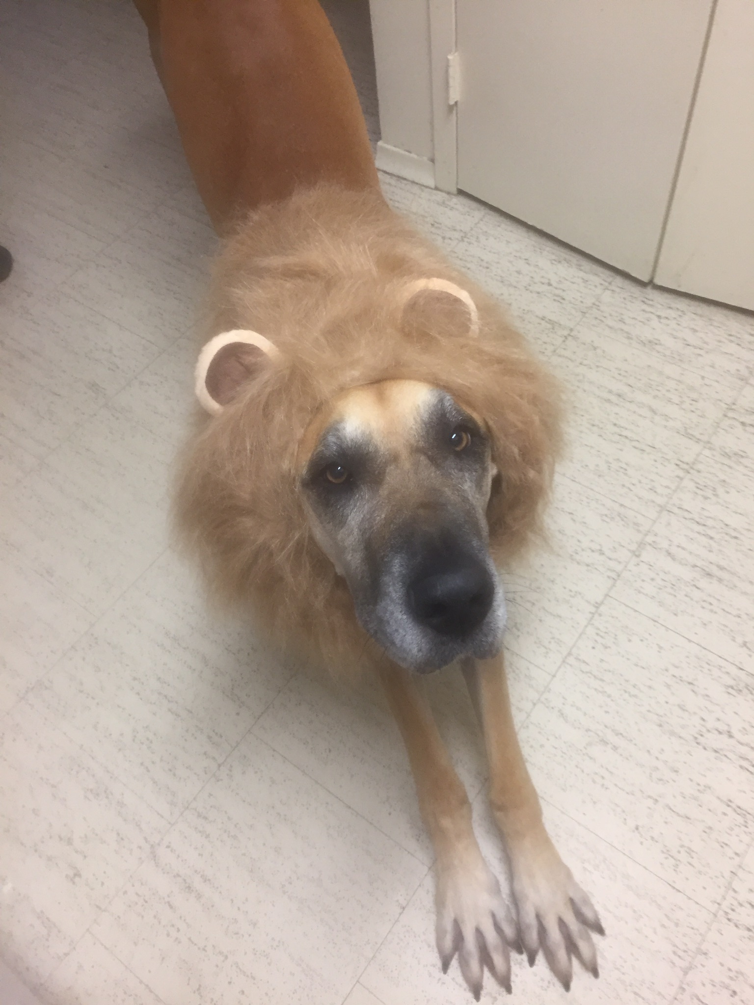Doberman Mila Belle at 17 months old ready for Halloween trick or treating.