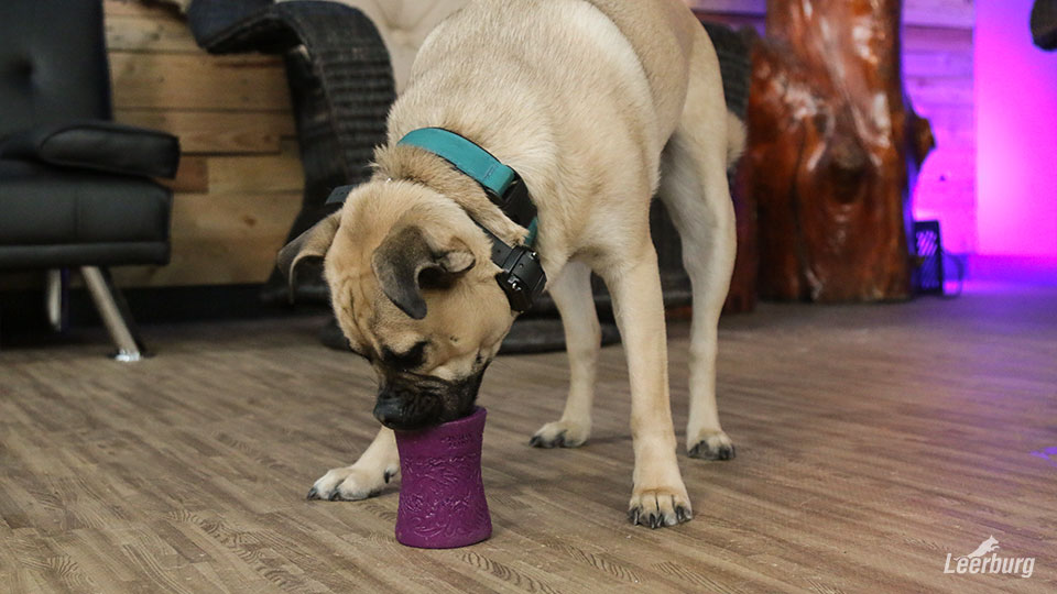 We designed this stopper here at Leerburg to make the Funnl a more versatile and interactive treat toy. Simply plug the indented end of the Funnl with this stopper, stuff it full of your dog's favorite treats and food, then freeze the stuffed Funnl.