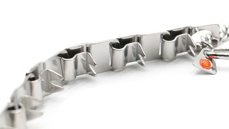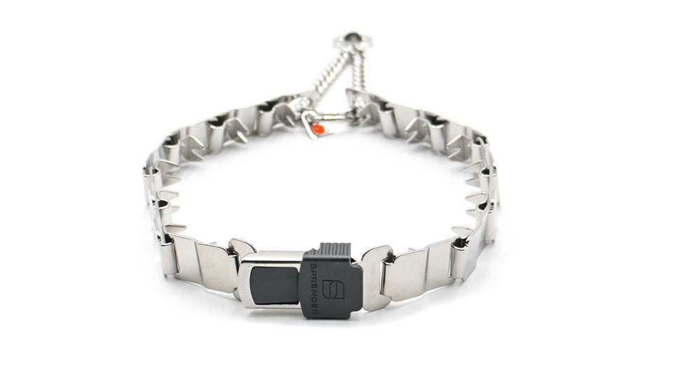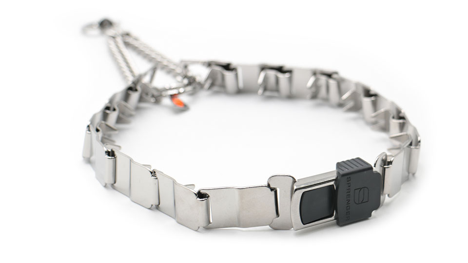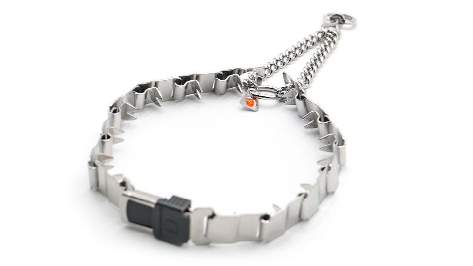 Herm Sprenger Stainless Steel NeckTech Sport Collars are great for strength, effectiveness and discreet appearance. The elements in the NeckTech collars mimic the shape of dog’s teeth so they will create a “natural influence” on your dog- the dog will feel a sensation much like the nip that a dog will give to correct another. The enclosed design of the NeckTech collar conceals the collar, making it very discreet without the need for nylon covers. Elements may be added or taken out to get the perfect fit. This collar can be used with both long and short haired dogs. When used correctly these collars will not harm your dog.