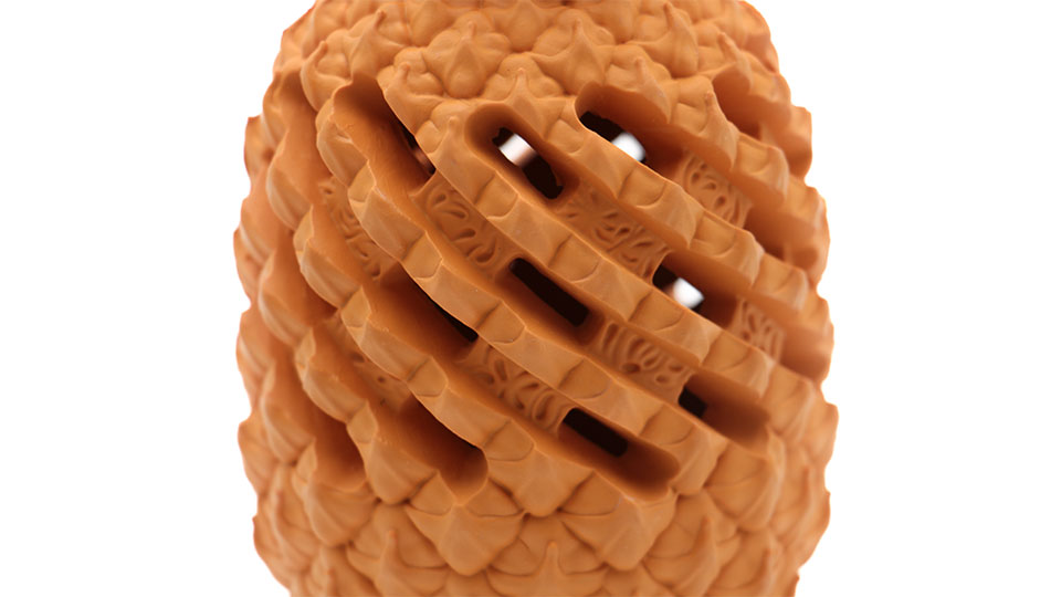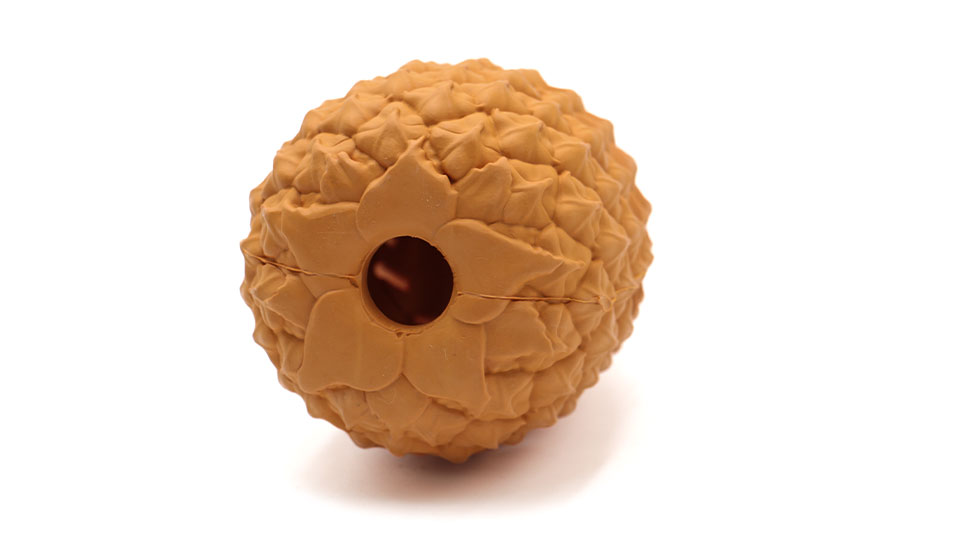 The Pineapple Dog Toy can be filled with treats to keep your dog engaged and motivated during play. Softer treats can be pressed into the textured surface for your dog to lick clean — great for extended engagement and mental stimulation.