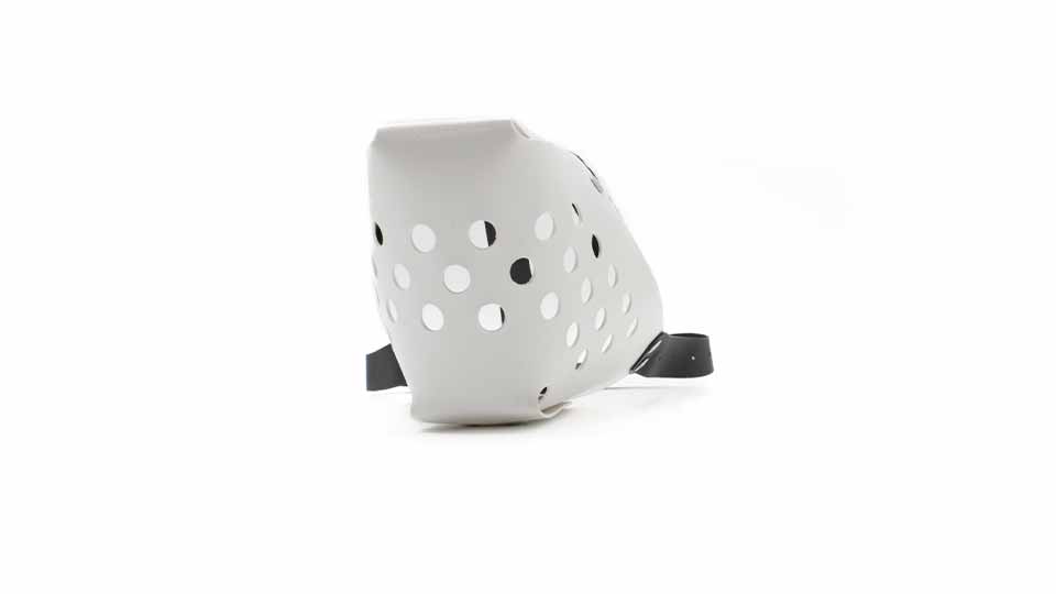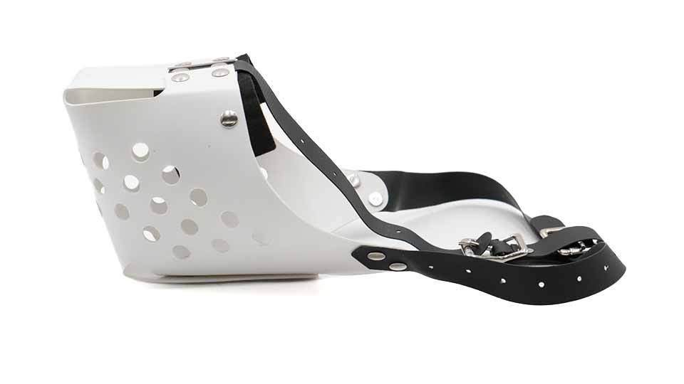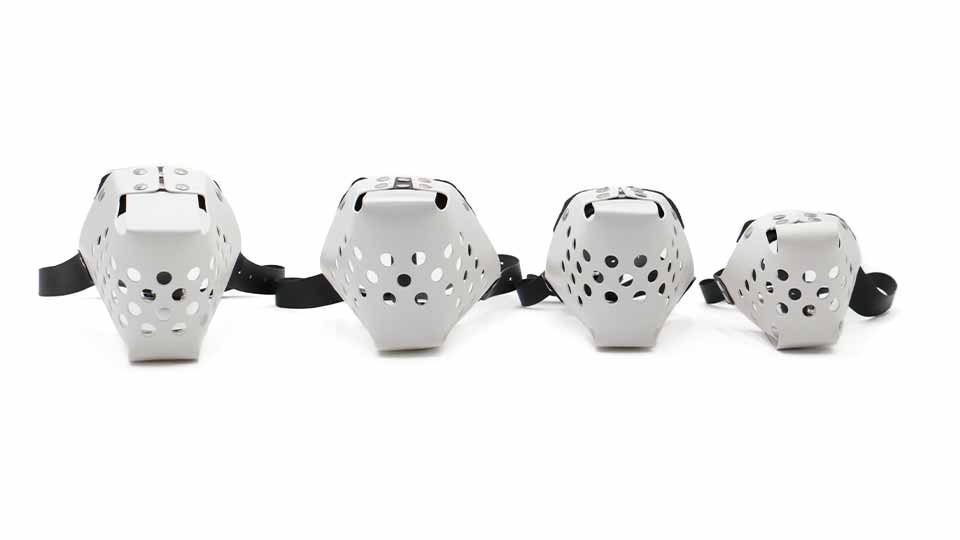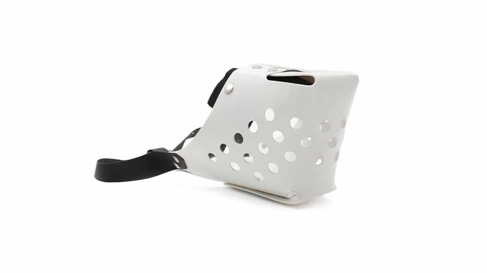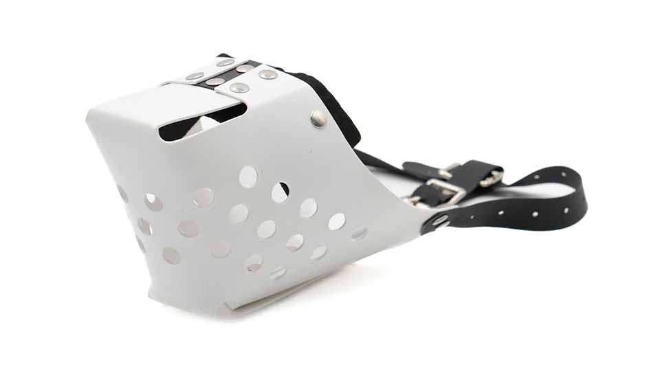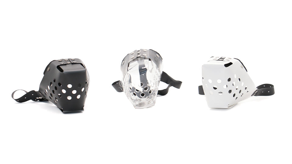 3-Strap Muzzles are a tried and true plastic basket muzzle that offers good security. It's great to wear for extended periods of time without inhibiting your dog's breathing, barking, or panting. Your dog can also drink water with the muzzle on (you'll need to teach your dog that it's okay to put the muzzle into the water before leaving them unattended for any period of time). These are easy to put on and off and will last for many years.