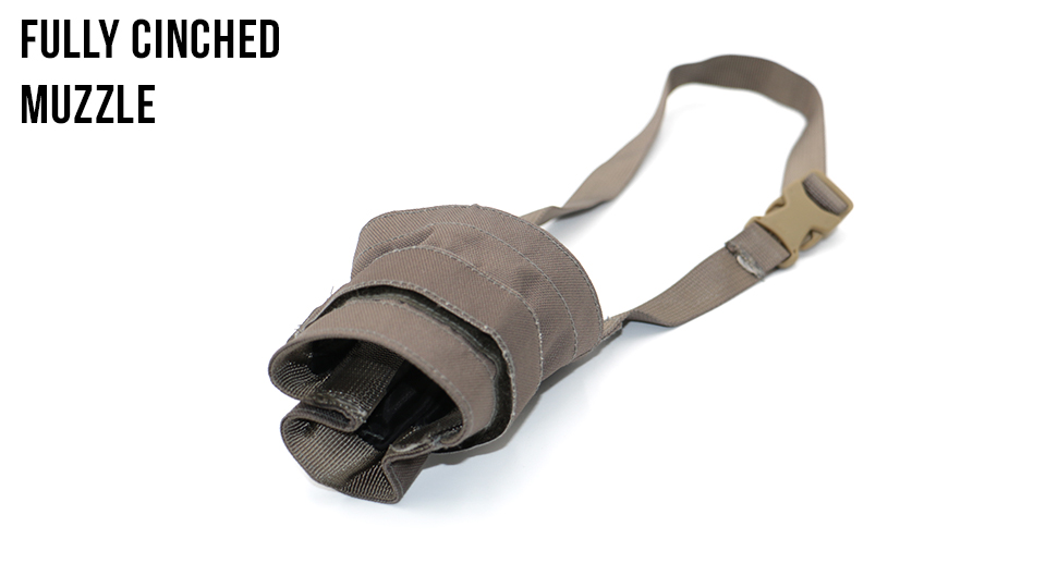Constructed from heavy-duty nylon with a nylon liner, and reinforced with nylon webbing, this muzzle is built to hold up to regular use while remaining light enough to fold down into a compact size. It easily slips into a vehicle door pocket, pants pocket, backpack, or fanny pack, so you can bring it along wherever your adventures take you.