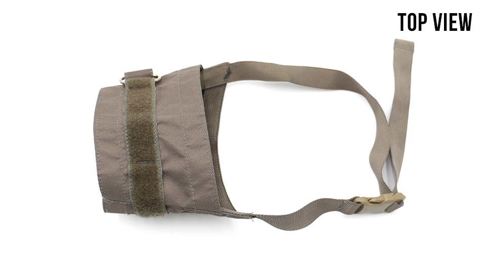 - Velcro Strap: 12" female strap (circumference of outside of muzzle), 3.5" male strap